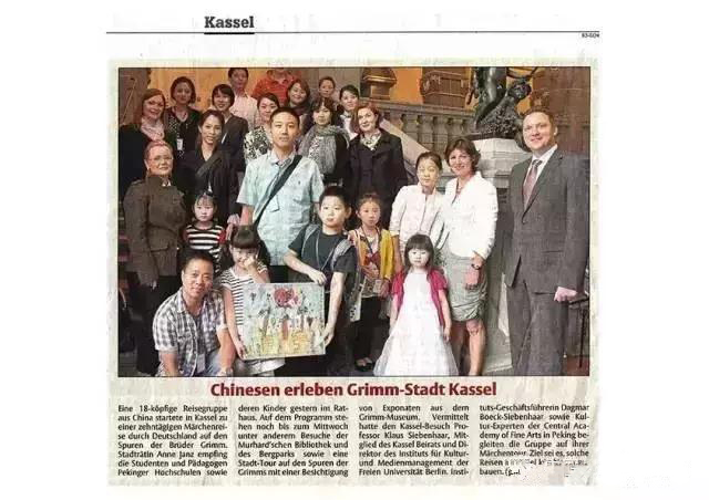 (2011年郑勤砚带领中央美院少儿艺术教育工作室学生们在德国柏林中国文化中心举办学生画展,受到德国卡塞尔市市长接见,当地黑森州报新闻介绍)