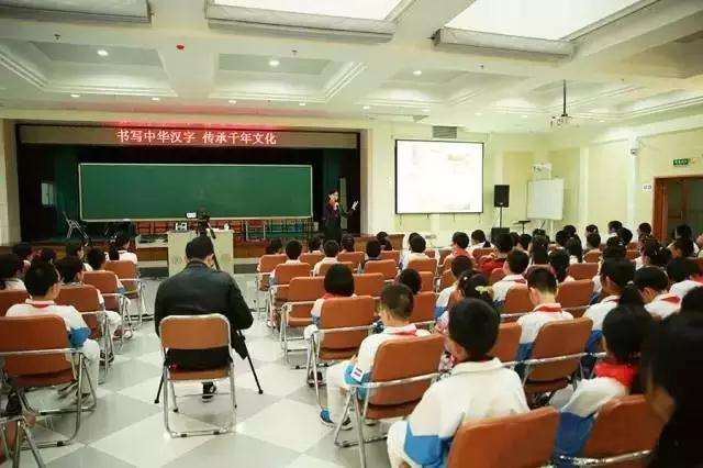 (郑勤砚在北京小学给学生做书法讲座)